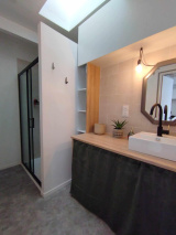 Vous trouverez également une chambre indépendante avec rangements pratiques, une salle d'eau moderne, ainsi que des WC séparés.