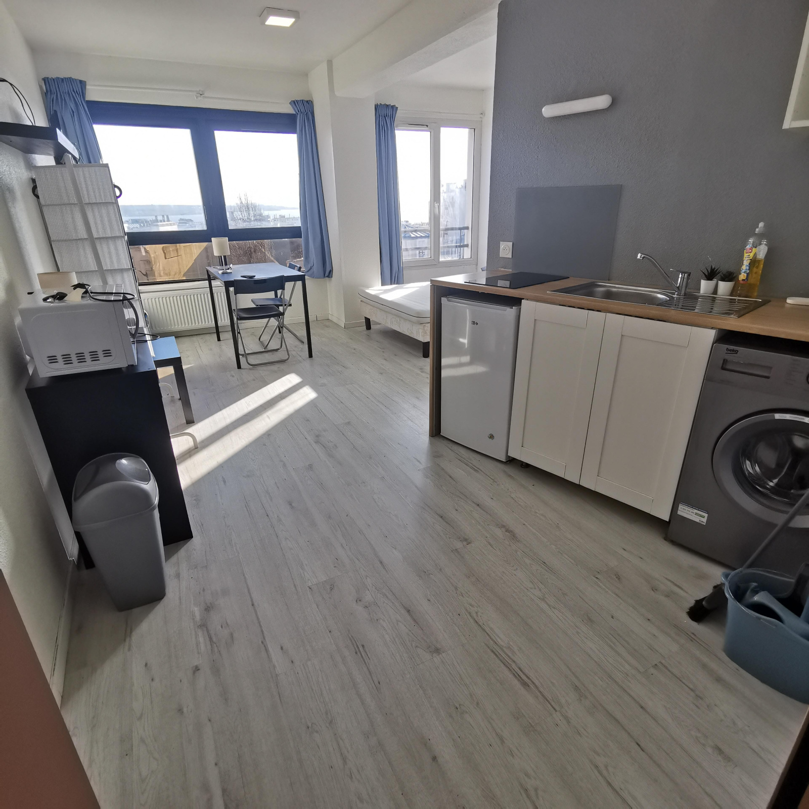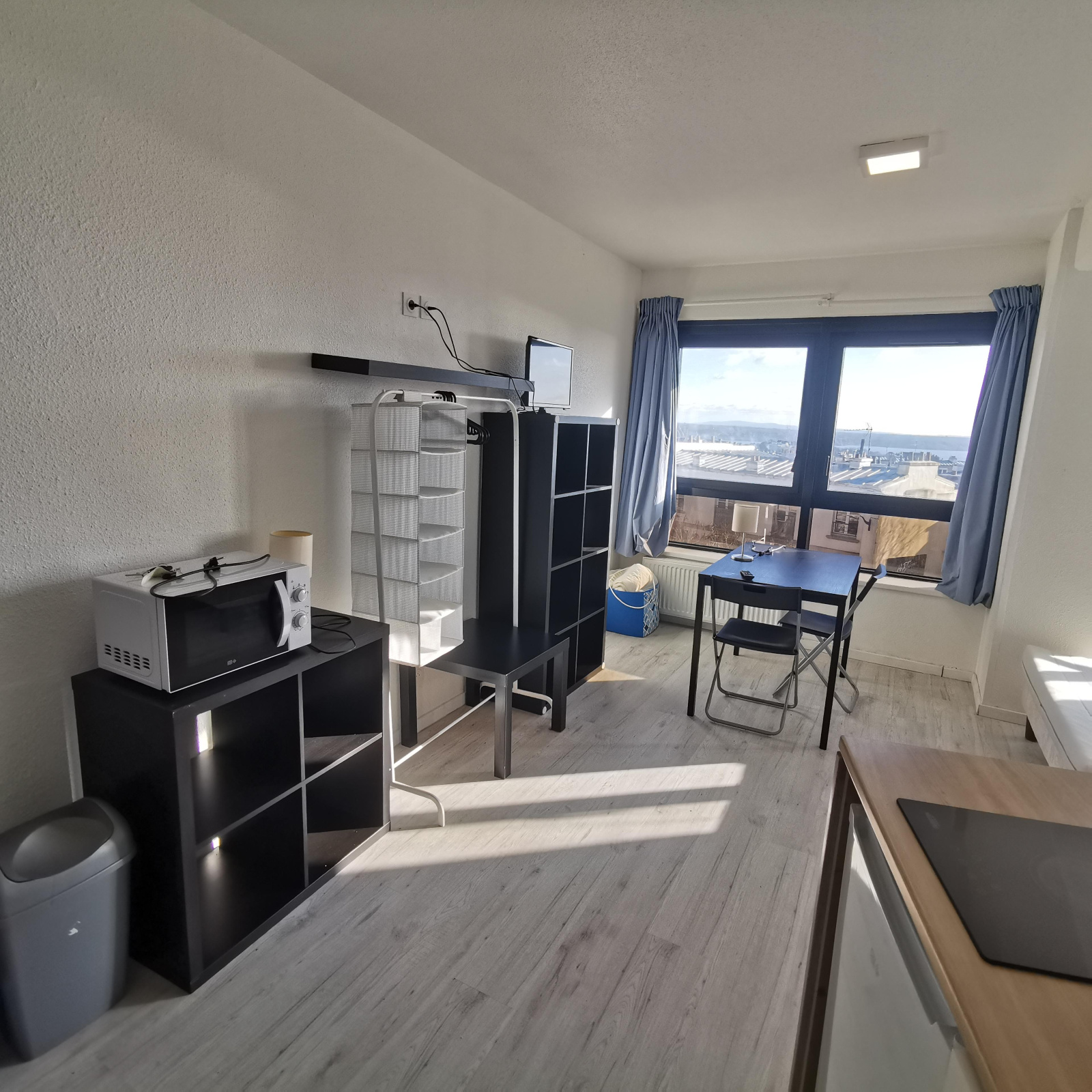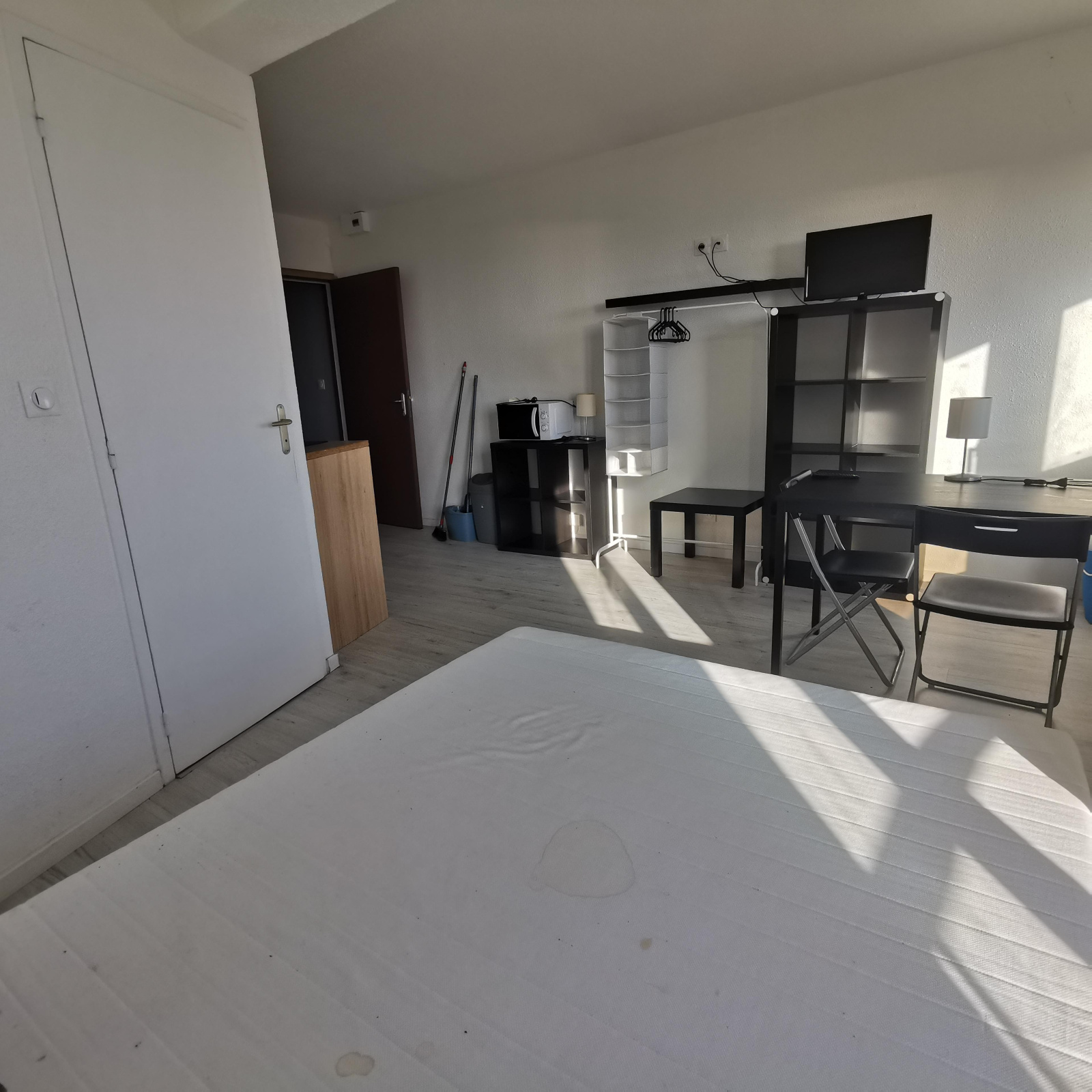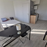 à louer un studio meublé de 20 m² composé d'une salle d'eau avec WC, un cuisine ouverte sur chambre, rangements