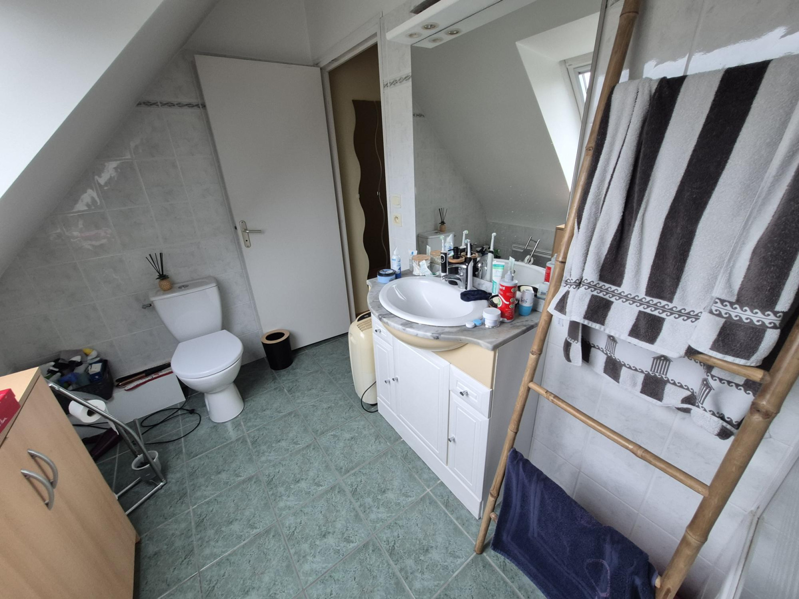 A l'étage, dégagement, 3 chambres et une salle de bains avec WC