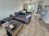 Cette maison de 2007 d'une surface de 75 m² se compose au rez de chaussée d'une entrée avec rangements, une cuisine aménagée et semi-équipée ouverte sur pièce de vie, une buanderie, wc