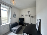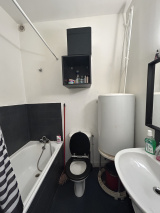 Un appartement de type 1 situé au rez-de-chaussée, composé d'une pièce principale avec une cuisine, une salle de bains et un W.C.