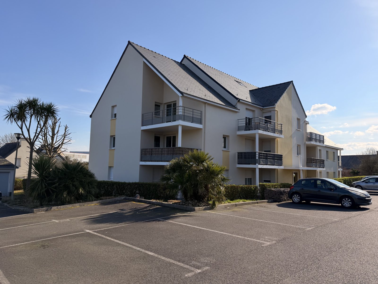 Dans le batiment A au premier étage, un appartement de type T3 se composant s'une entrée, un séjour, une kitchenette, deux chambres avec placard, une salle de bains et un wc portant le numéro 9 du plan avec balcon , avec ça deux place de parking privative.