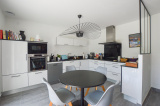 Au rez-de-chaussée, une cuisine de 2022 avec plan de travail en granit, un WC séparé et un bureau. Une extension a été réalisée en 2017, créant un espace de