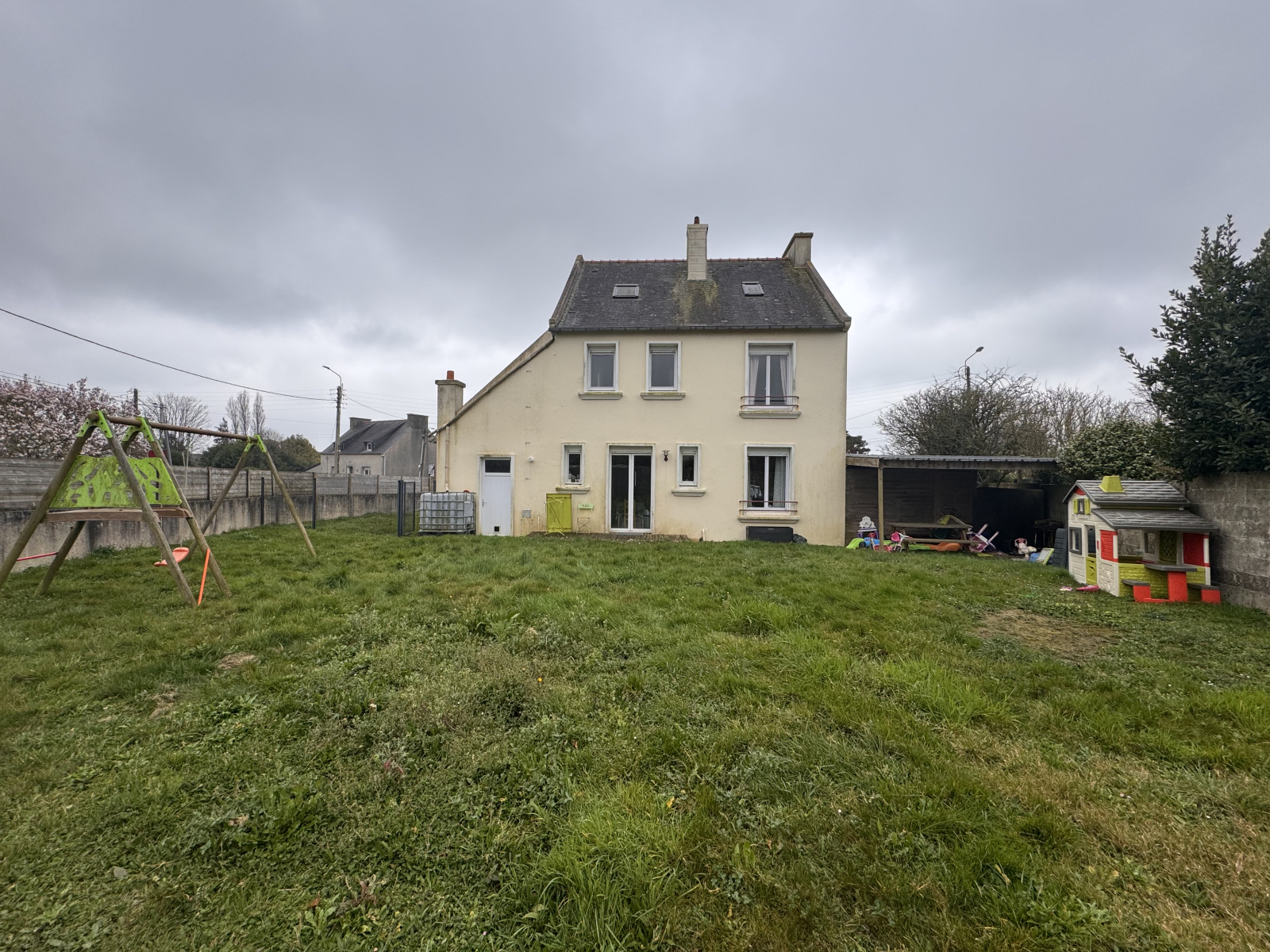 En extérieur un jardin cloturé; 2 places de parking, un cabanon.