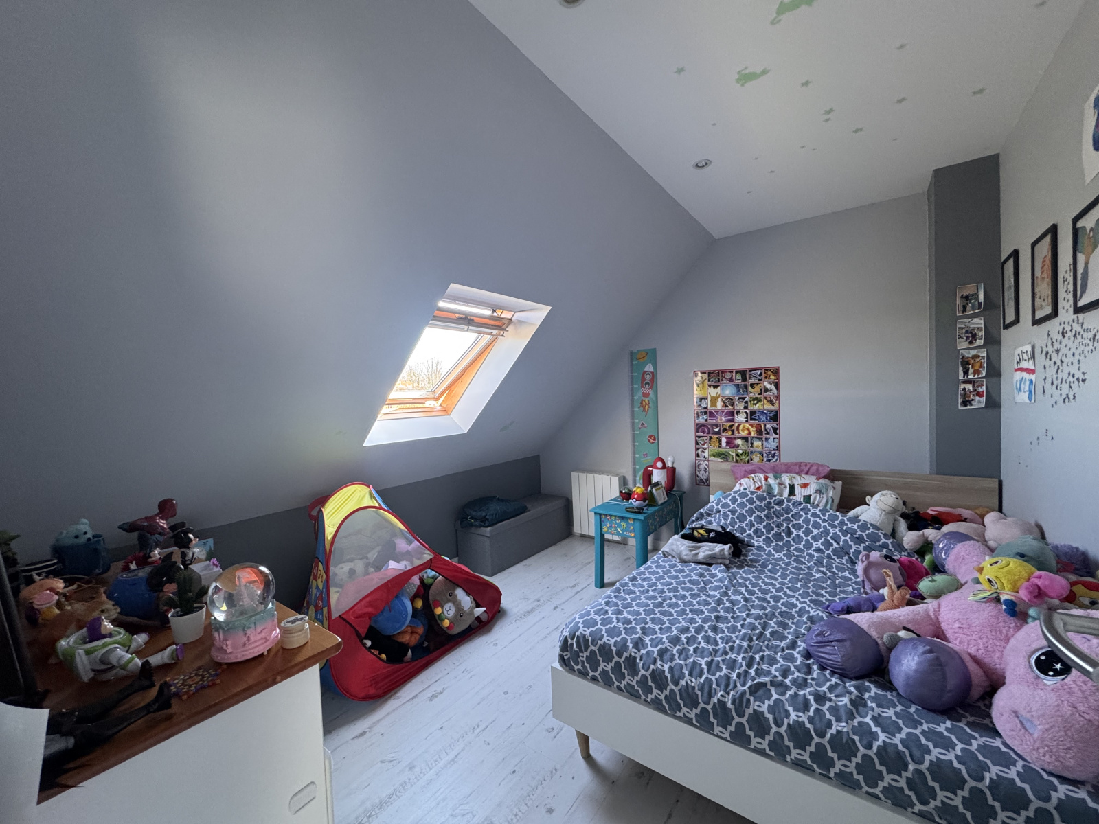 A l'étage, vous découvrirez une mezzanine, pouvant être aménagée en bureau ou en salle de jeux, deux grandes chambres, un dressing, une salle d'eau avec WC