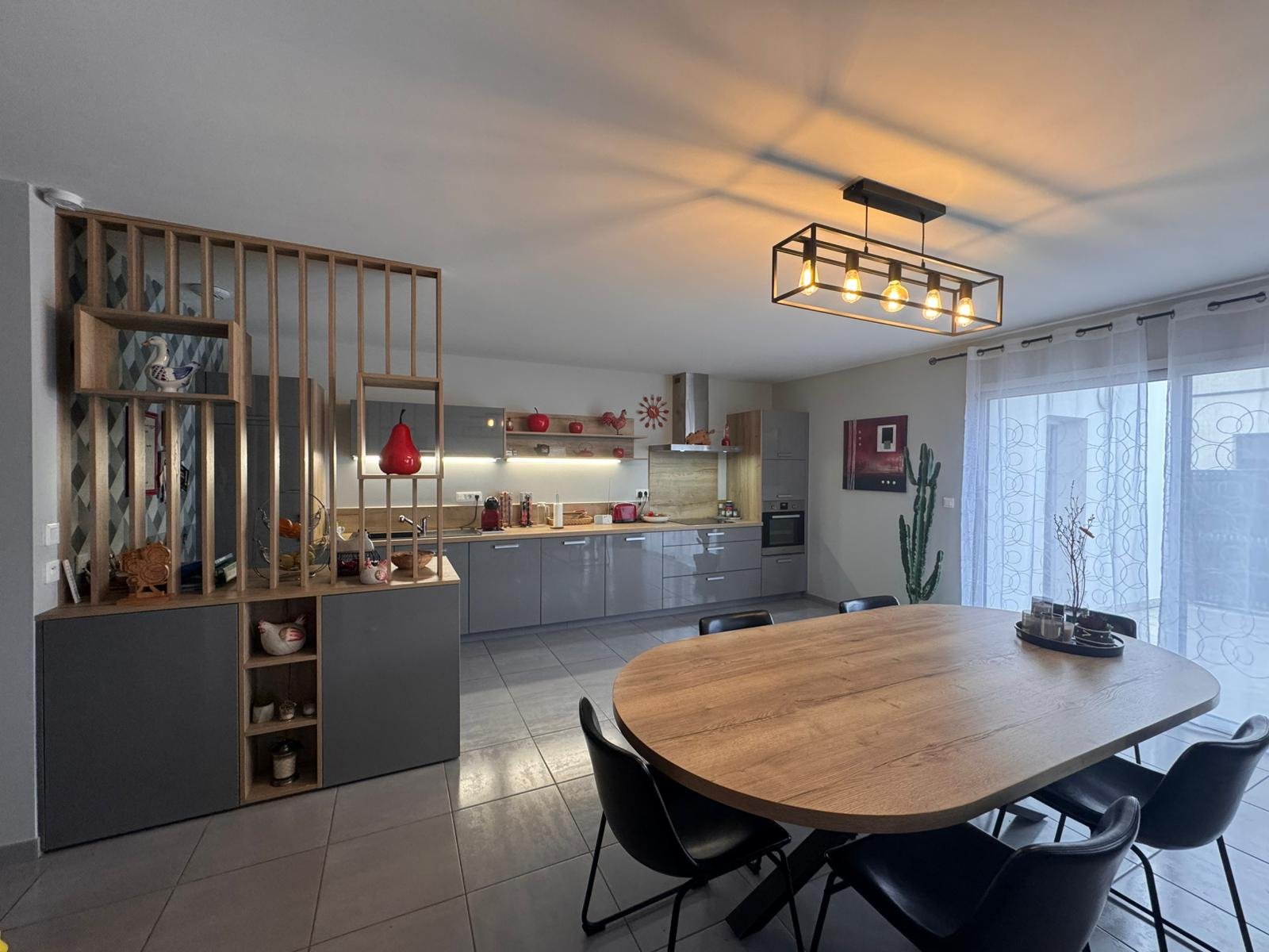 Une belle pièce de vie spacieuse et chaleureuse avec cuisine aménagée et équipée ouverte