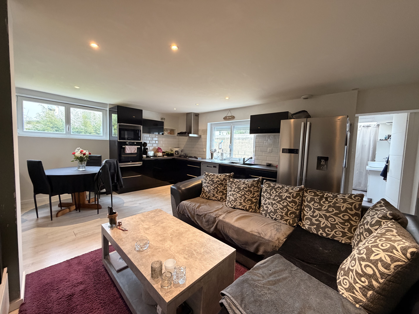 Il se compose d'une pièce de vie avec cuisine ouverte sur salon-séjour, de deux chambres avec placards, ainsi que d'un espace comprenant salle de bains, WC et buanderie.